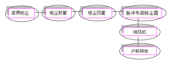 我司根据每台机器的排尘口设计吸尘软管和多吸头。通过风管与吸尘罩把每台机器的粉尘收集,接到脉冲布袋除尘器进行处理,除尘器放置在室外,且风管力求最节约粉尘最终通过风机达标排放。